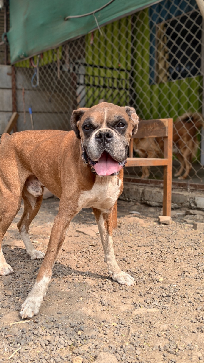 – He is being rehomed as his family has shifted to Qatar, where Boxer breeds are not allowed.